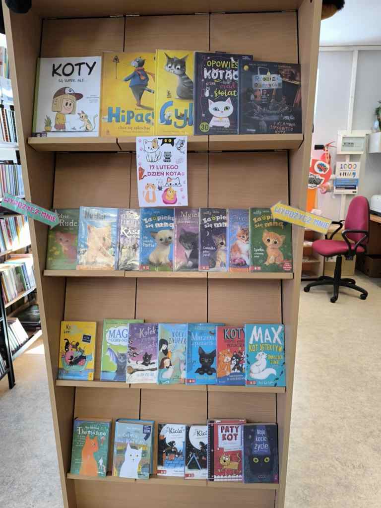 Dzisiaj nasza bibliotekę opanowały koty, ponieważ 17 lutego to Dzień Kota.