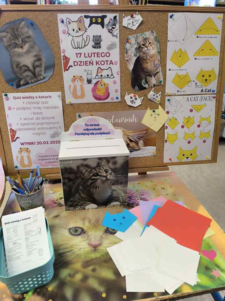 Zapraszamy wszystkich miłośników tych puszystych zwierząt do naszej biblioteki. Mamy dla Was mnóstwo książek o kotach, quiz wiedzy oraz kocie origami!
