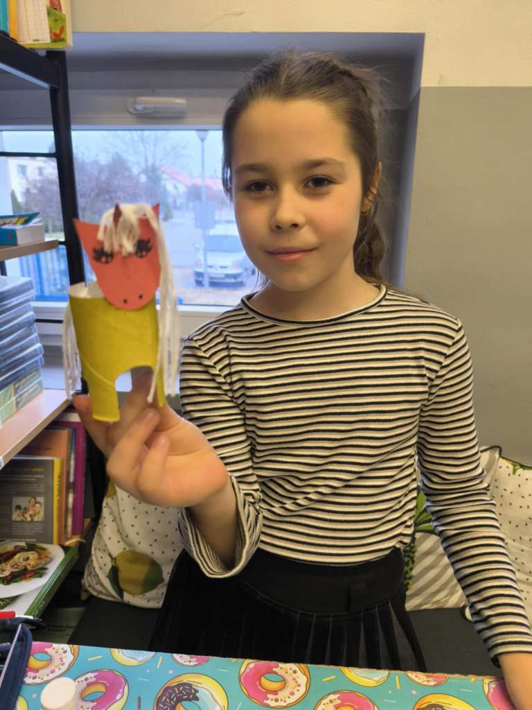 13.01.2022 Dziś na zajęciach czytelniczo-plastycznych poznaliśmy żubra Pompika i jego rodzinkę. Seria tych książeczek przybliża nam wiele polskich parków narodowych oraz ich mieszkańców. Tym razem przeczytaliśmy książkę o przygodach z wydrą, która przypomina o tym, że zabawa jest dobra dla każdego w każdym wieku. Następnie każdy z nas zabrał się do tworzenia maski żubra. Piękne stado nam z tego wyszło 🙂