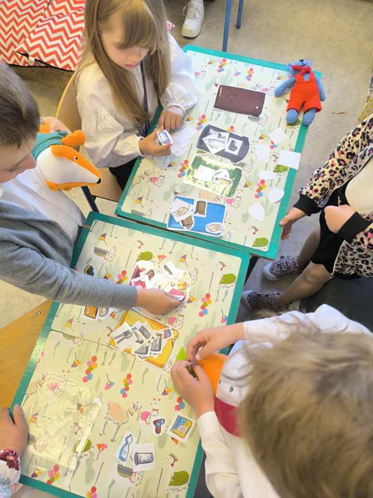 Klasy 6 i 7 po wysłuchaniu streszczenia pierwszego tomu serii oraz opisu zamku zabrały się do tworzenia makiety (efekty wkrótce!). Klasy 8 po wysłuchaniu streszczenia miały okazję zapoznać się z wcześniej przygotowaną prezentacją dotyczącą królestwa Araluen oraz głównych bohaterów. Dodatkowo uczniowie otrzymali linku do fandomów serii Zwiadowcy by poszerzyć wiadomości, a na koniec zmierzyli się z quizem na platformie Kahoot!